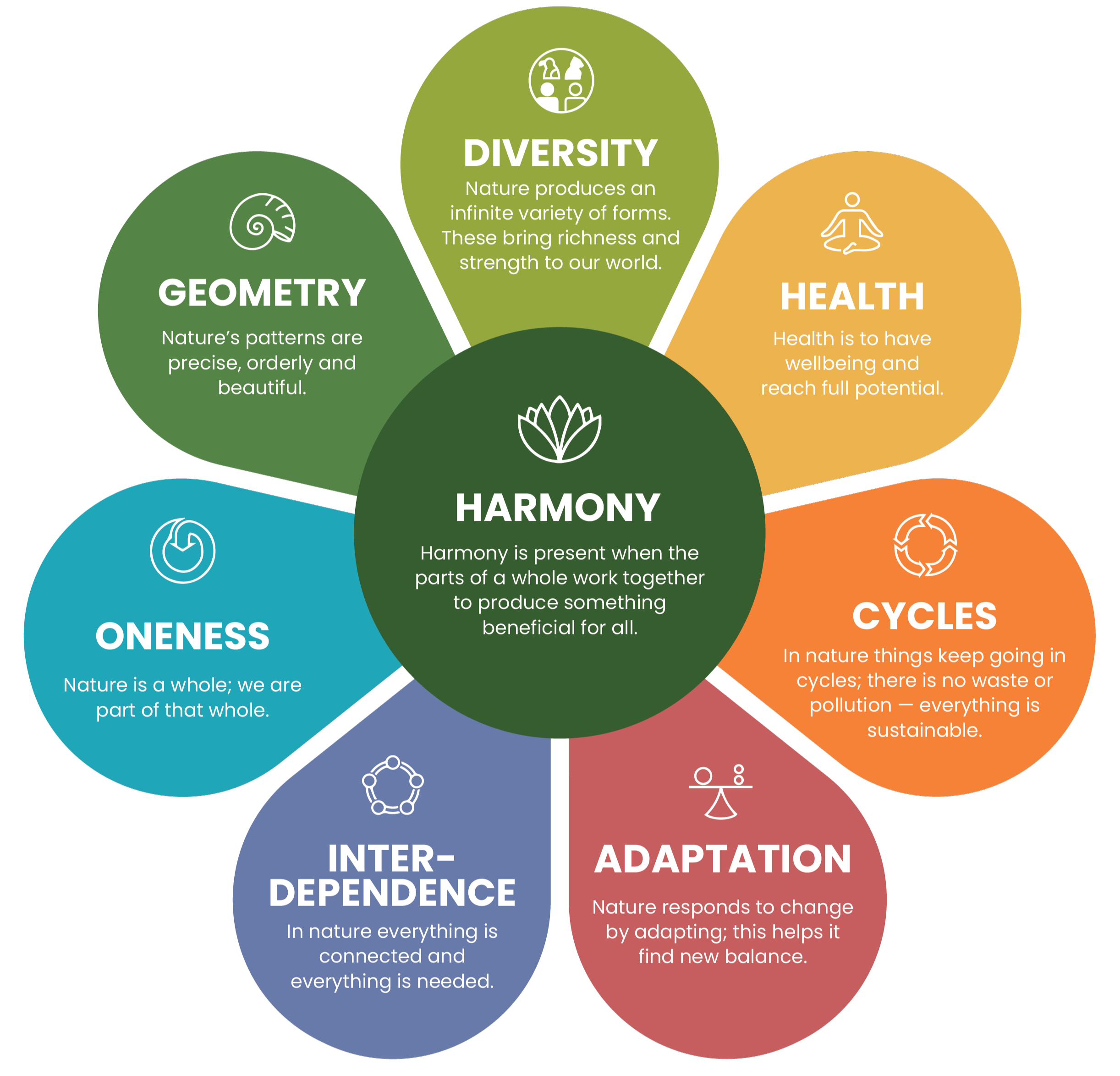 By placing Nature’s principles of Harmony at the heart of our teaching, pupils learn to see how everything is connected and how balance in Nature supports life and well-being. These principles include: